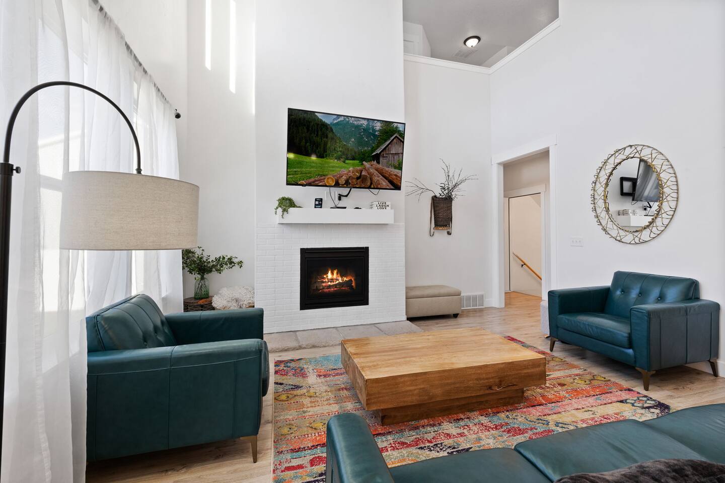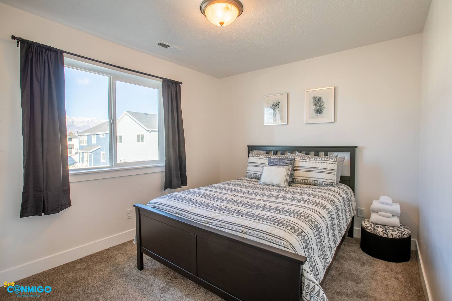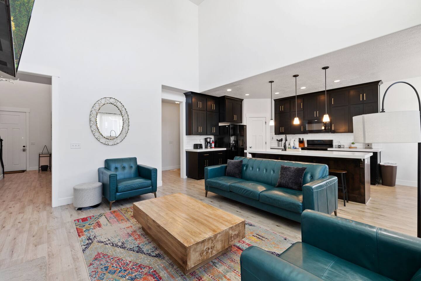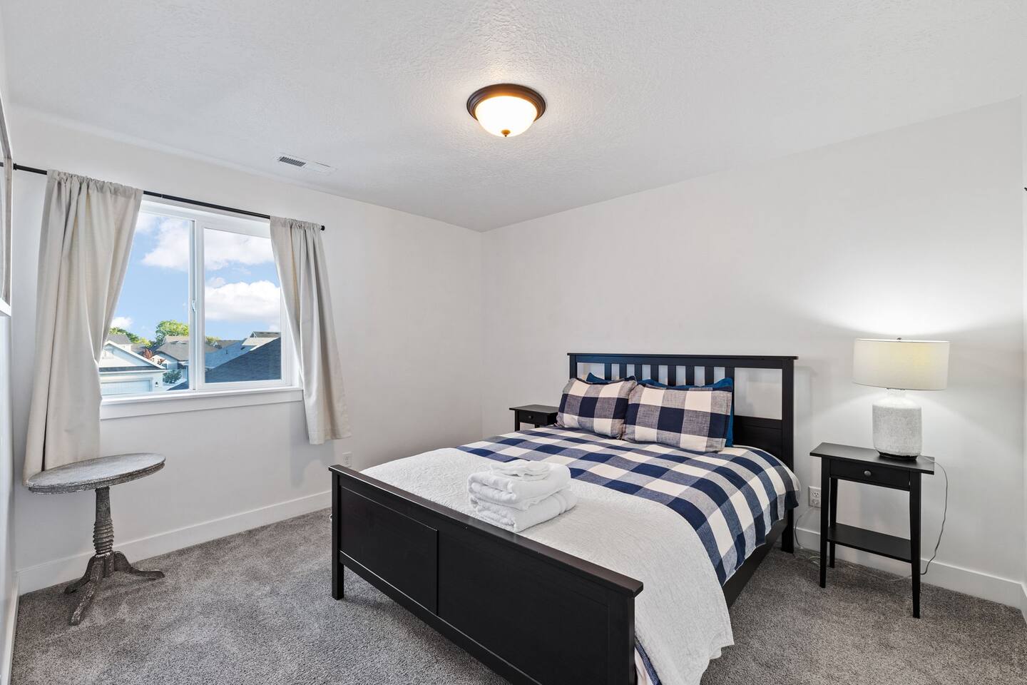 Living Area & Kitchen: The kitchen, living room, and dining room are all connected and are the heart of the home for gathering, eating, and creating memories. The kitchen is fully stocked and has an island with seating for 4 people. Towards the back of the home, you will find the dining table that seats 6 and provides access to the backyard. The living space has a 70" TV over the fireplace surrounded by a stylish couch and two (2) armchairs. The kitchen is stocked with all necessary appliances including a waffle maker and coffee maker. You’ll also find sufficient dish ware and utensils for large groups. The basement also has a fully stocked kitchen and dining area with seating for 6 people. Exterior: The home has a front and backyard available to guests. Outside the back door there is a small patio area with a gas grill available to guests and a hot tub. There is also an outdoor dining area with a gazebo. Bedrooms: The master bedroom is located on the ground floor and has a king bed just off from the living space. There is an attached bath with jetted tub and a separate shower. A large walk-in closet provides plenty of space to store your luggage and a workstation with a large desk and chair. On the second level of the home up a flight of stairs, there are three (3) bedrooms with one (1) queen bed in each. Each bedroom has its own closet. The top three bedrooms share a bathroom that is located on the second level. The basement has two (2) bedrooms. One has a king sized bed and the other has a bunk bed and a desk for another working space. Bathroom(s) & Laundry: On the main level in the master bedroom, there is a large dual sink bathroom with a shower, separate jetted tub, and toilet. On the second level, there is a single sink bathroom that has a secondary door that separates the shower/tub and toilet from the sink and vanity. In the basement, there is a single sink bathroom with shower/tub and toilet. There is a washer and dryer located on the main level that is connected to the mudroom as one enters the home from the garage. There is also a 2 in 1 washer/dryer in the basement. Specific Amenities: The guests will have full access to a 2-car enclosed garage equipped with Tesla wall charger. Wi-Fi Speed: Xfinity -- 701.53 Download See images for test results Distances to these local destinations: - Evermore Park -- 10 minutes - Mount Timpanogos Utah Temple -- 10 minutes - Thanksgiving Point -- 10 minutes - Young Living Essential Oils (Global Headquarters) -- 11 minutes - Utah Valley University -- 13 minutes - Utah Lake State Park - 21 minutes - Brigham Young University -- 23 minutes - Sundance Resort -- 32 minutes - Alta/Snowbird ski resorts — 46 minutes (Note: Distance provided by the most popular navigation website)