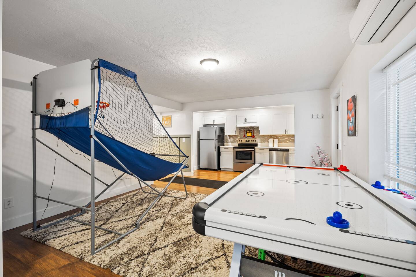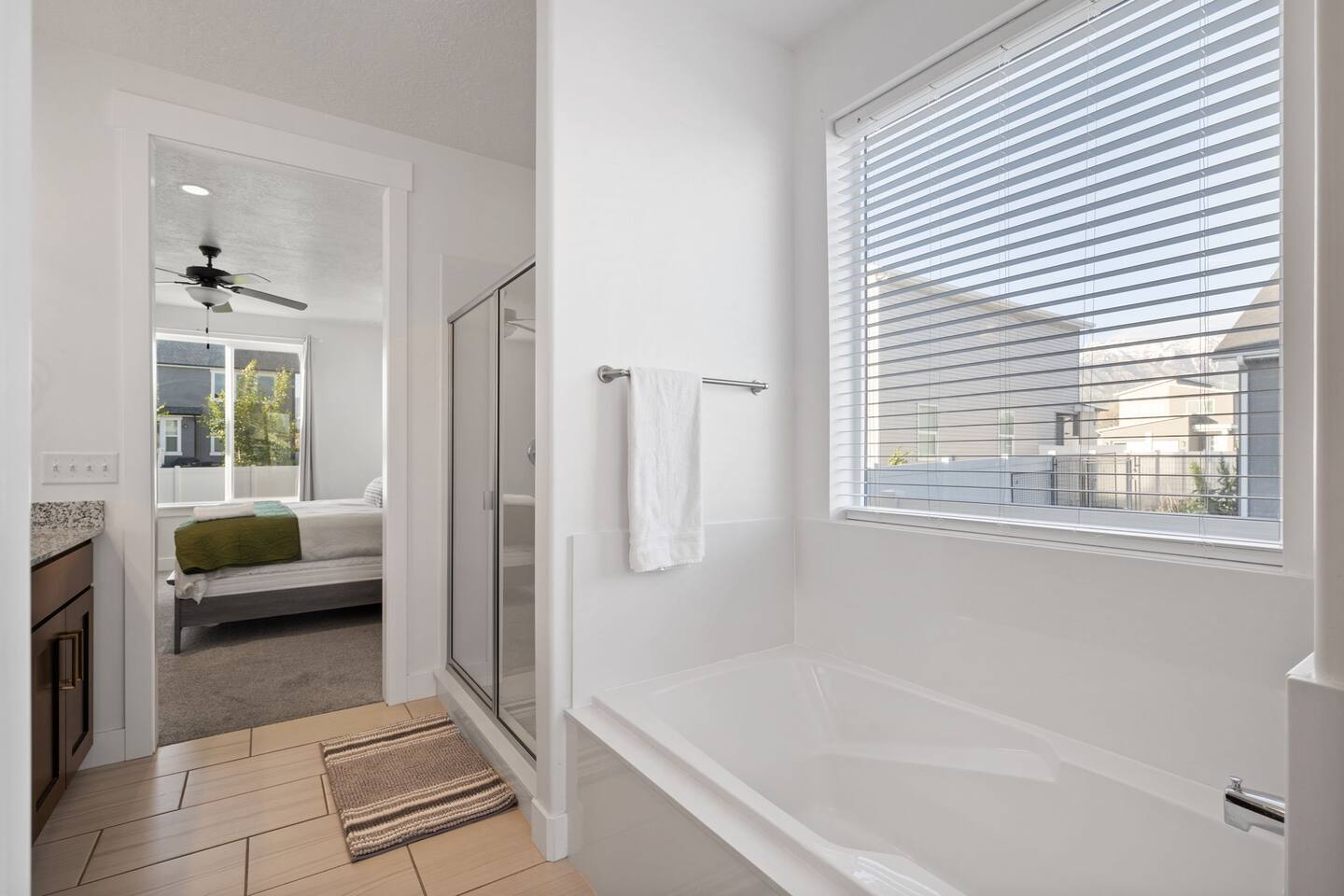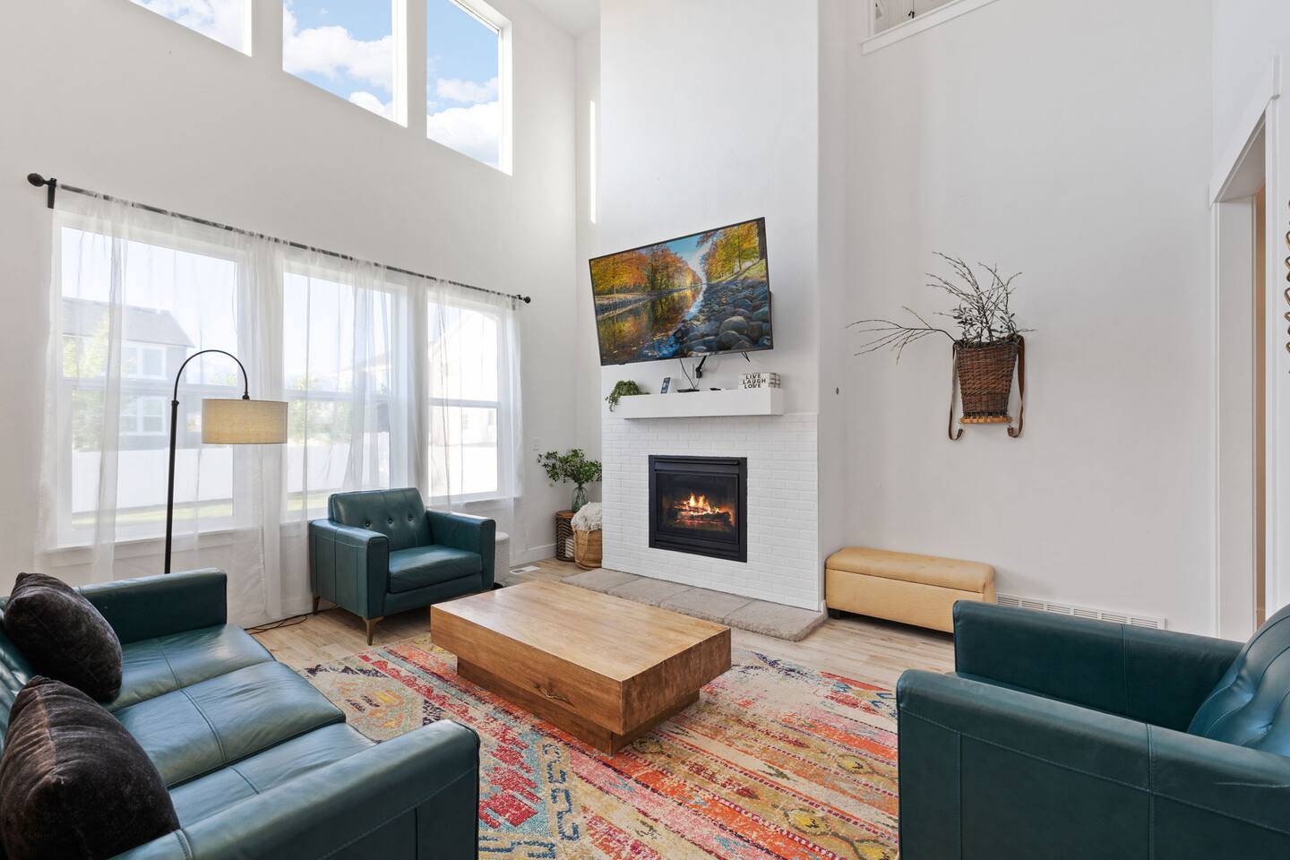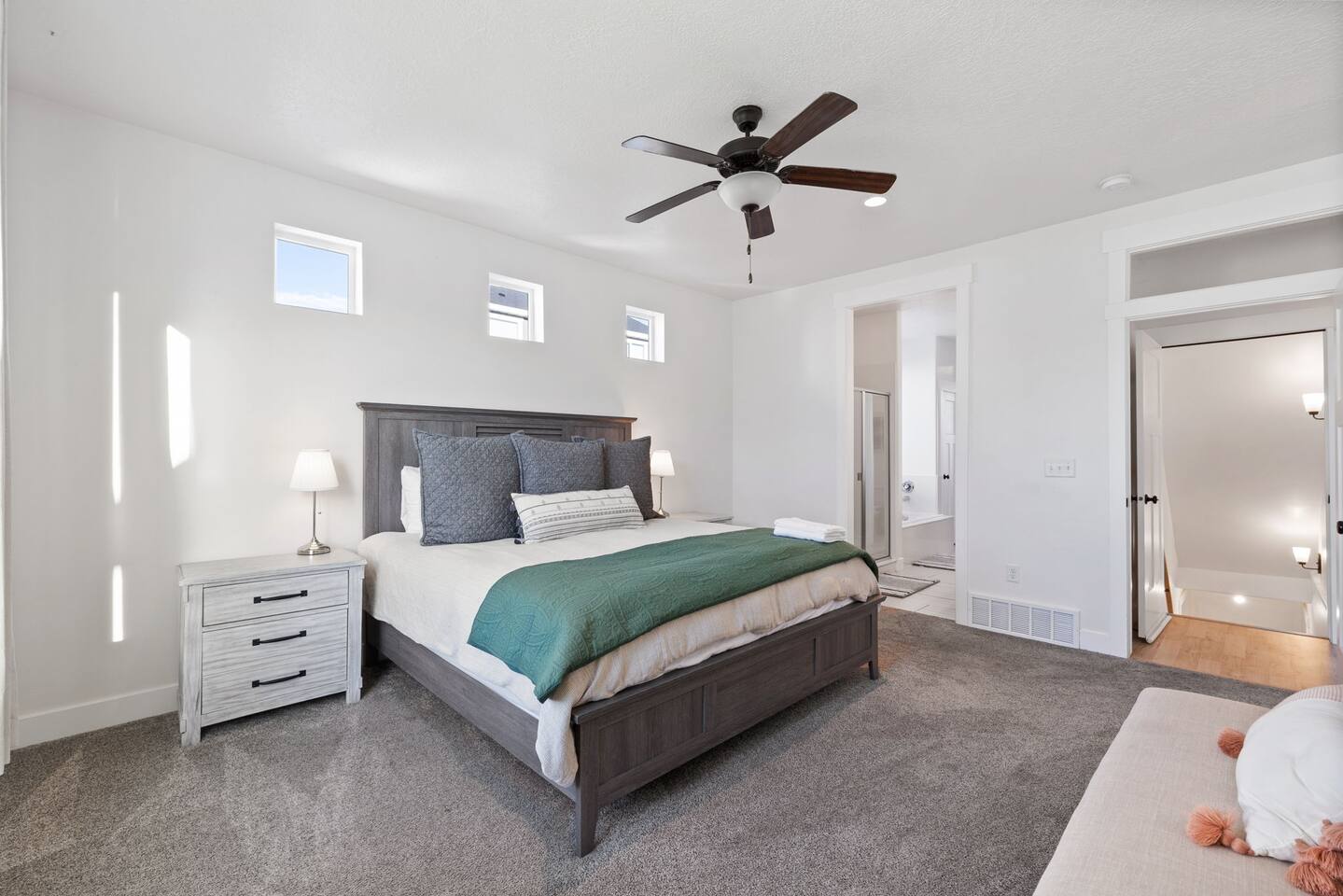 Living Area & Kitchen: The kitchen, living room, and dining room are all connected and are the heart of the home for gathering, eating, and creating memories. The kitchen is fully stocked and has an island with seating for 4 people. Towards the back of the home, you will find the dining table that seats 6 and provides access to the backyard. The living space has a 70" TV over the fireplace surrounded by a stylish couch and two (2) armchairs. The kitchen is stocked with all necessary appliances including a waffle maker and coffee maker. You’ll also find sufficient dish ware and utensils for large groups. The basement also has a fully stocked kitchen and dining area with seating for 6 people. Exterior: The home has a front and backyard available to guests. Outside the back door there is a small patio area with a gas grill available to guests and a hot tub. There is also an outdoor dining area with a gazebo. Bedrooms: The master bedroom is located on the ground floor and has a king bed just off from the living space. There is an attached bath with jetted tub and a separate shower. A large walk-in closet provides plenty of space to store your luggage and a workstation with a large desk and chair. On the second level of the home up a flight of stairs, there are three (3) bedrooms with one (1) queen bed in each. Each bedroom has its own closet. The top three bedrooms share a bathroom that is located on the second level. The basement has two (2) bedrooms. One has a king sized bed and the other has a bunk bed and a desk for another working space. Bathroom(s) & Laundry: On the main level in the master bedroom, there is a large dual sink bathroom with a shower, separate jetted tub, and toilet. On the second level, there is a single sink bathroom that has a secondary door that separates the shower/tub and toilet from the sink and vanity. In the basement, there is a single sink bathroom with shower/tub and toilet. There is a washer and dryer located on the main level that is connected to the mudroom as one enters the home from the garage. There is also a 2 in 1 washer/dryer in the basement. Specific Amenities: The guests will have full access to a 2-car enclosed garage equipped with Tesla wall charger. Wi-Fi Speed: Xfinity -- 701.53 Download See images for test results Distances to these local destinations: - Evermore Park -- 10 minutes - Mount Timpanogos Utah Temple -- 10 minutes - Thanksgiving Point -- 10 minutes - Young Living Essential Oils (Global Headquarters) -- 11 minutes - Utah Valley University -- 13 minutes - Utah Lake State Park - 21 minutes - Brigham Young University -- 23 minutes - Sundance Resort -- 32 minutes - Alta/Snowbird ski resorts — 46 minutes (Note: Distance provided by the most popular navigation website)