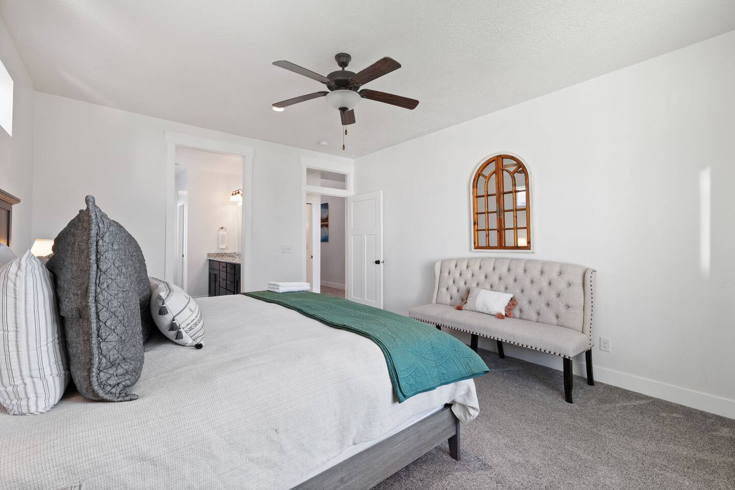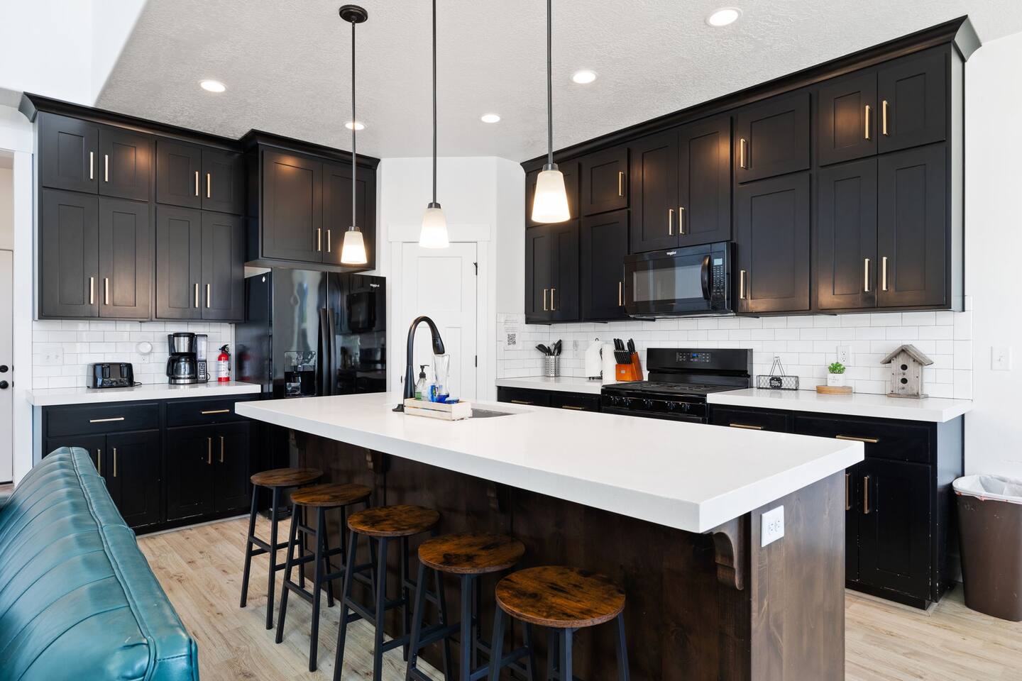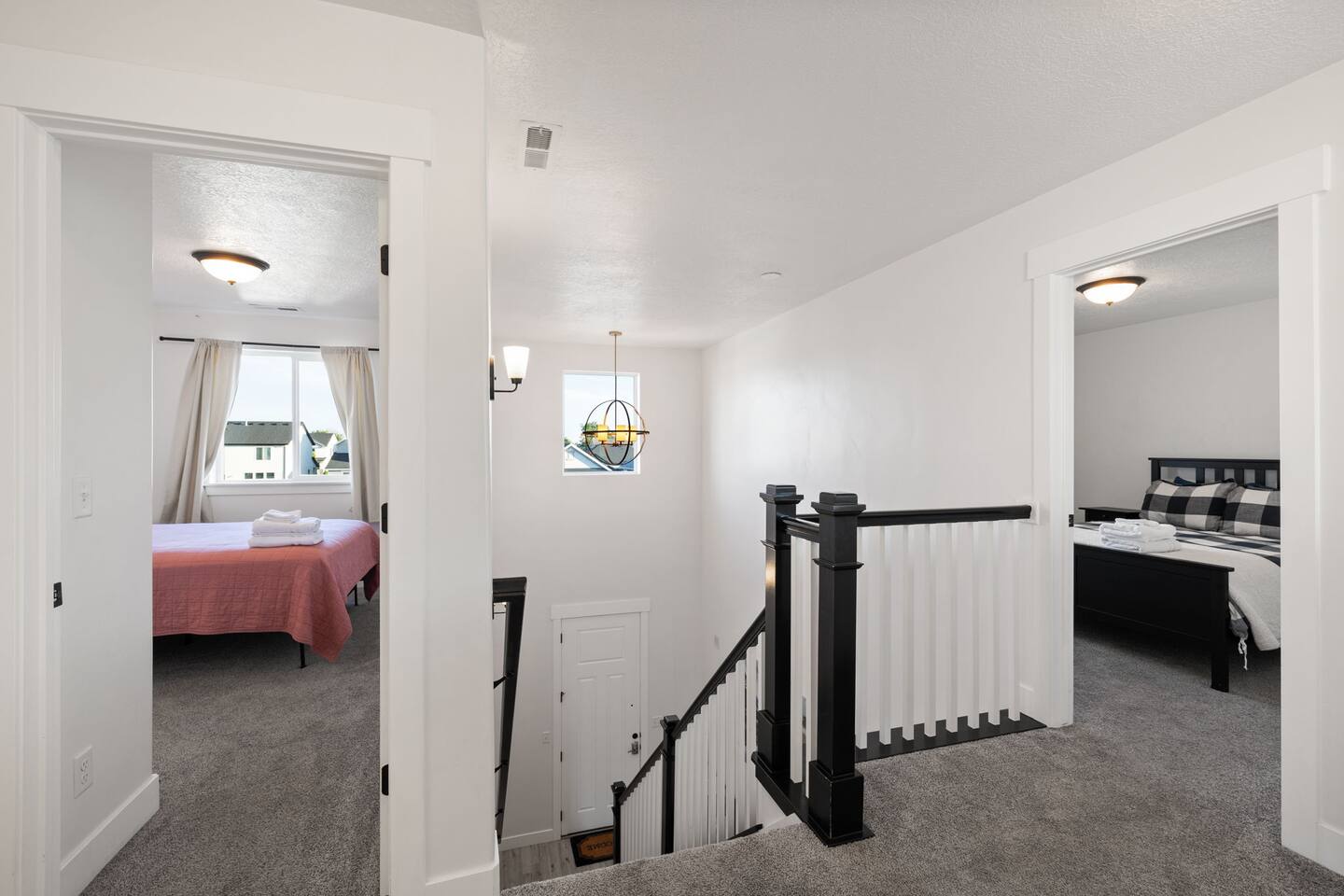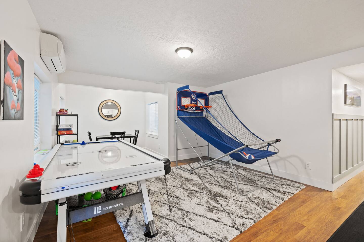 Living Area & Kitchen: The kitchen, living room, and dining room are all connected and are the heart of the home for gathering, eating, and creating memories. The kitchen is fully stocked and has an island with seating for 4 people. Towards the back of the home, you will find the dining table that seats 6 and provides access to the backyard. The living space has a 70" TV over the fireplace surrounded by a stylish couch and two (2) armchairs. The kitchen is stocked with all necessary appliances including a waffle maker and coffee maker. You’ll also find sufficient dish ware and utensils for large groups. The basement also has a fully stocked kitchen and dining area with seating for 6 people. Exterior: The home has a front and backyard available to guests. Outside the back door there is a small patio area with a gas grill available to guests and a hot tub. There is also an outdoor dining area with a gazebo. Bedrooms: The master bedroom is located on the ground floor and has a king bed just off from the living space. There is an attached bath with jetted tub and a separate shower. A large walk-in closet provides plenty of space to store your luggage and a workstation with a large desk and chair. On the second level of the home up a flight of stairs, there are three (3) bedrooms with one (1) queen bed in each. Each bedroom has its own closet. The top three bedrooms share a bathroom that is located on the second level. The basement has two (2) bedrooms. One has a king sized bed and the other has a bunk bed and a desk for another working space. Bathroom(s) & Laundry: On the main level in the master bedroom, there is a large dual sink bathroom with a shower, separate jetted tub, and toilet. On the second level, there is a single sink bathroom that has a secondary door that separates the shower/tub and toilet from the sink and vanity. In the basement, there is a single sink bathroom with shower/tub and toilet. There is a washer and dryer located on the main level that is connected to the mudroom as one enters the home from the garage. There is also a 2 in 1 washer/dryer in the basement. Specific Amenities: The guests will have full access to a 2-car enclosed garage equipped with Tesla wall charger. Wi-Fi Speed: Xfinity -- 701.53 Download See images for test results Distances to these local destinations: - Evermore Park -- 10 minutes - Mount Timpanogos Utah Temple -- 10 minutes - Thanksgiving Point -- 10 minutes - Young Living Essential Oils (Global Headquarters) -- 11 minutes - Utah Valley University -- 13 minutes - Utah Lake State Park - 21 minutes - Brigham Young University -- 23 minutes - Sundance Resort -- 32 minutes - Alta/Snowbird ski resorts — 46 minutes (Note: Distance provided by the most popular navigation website)