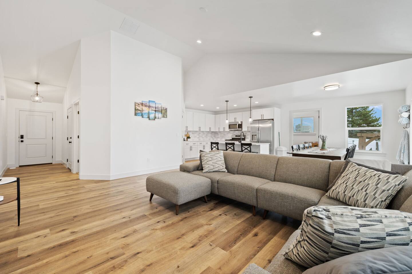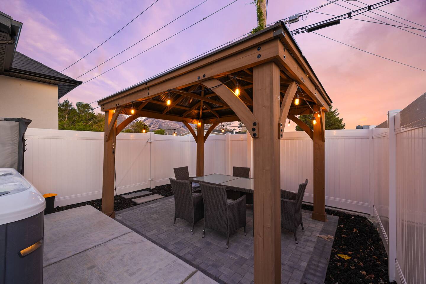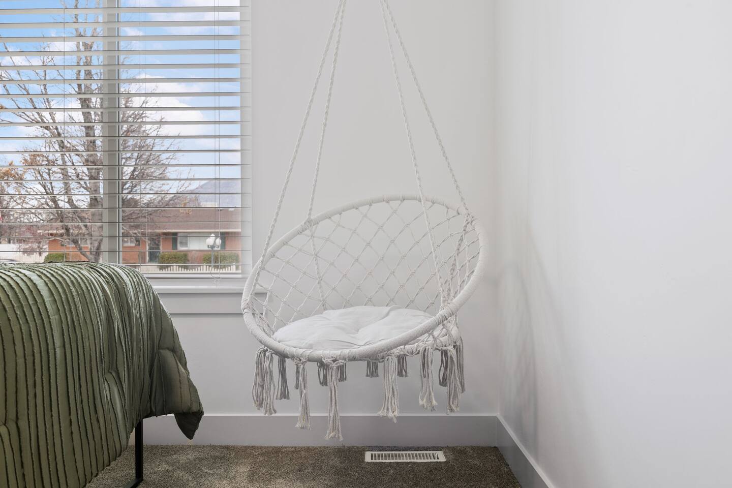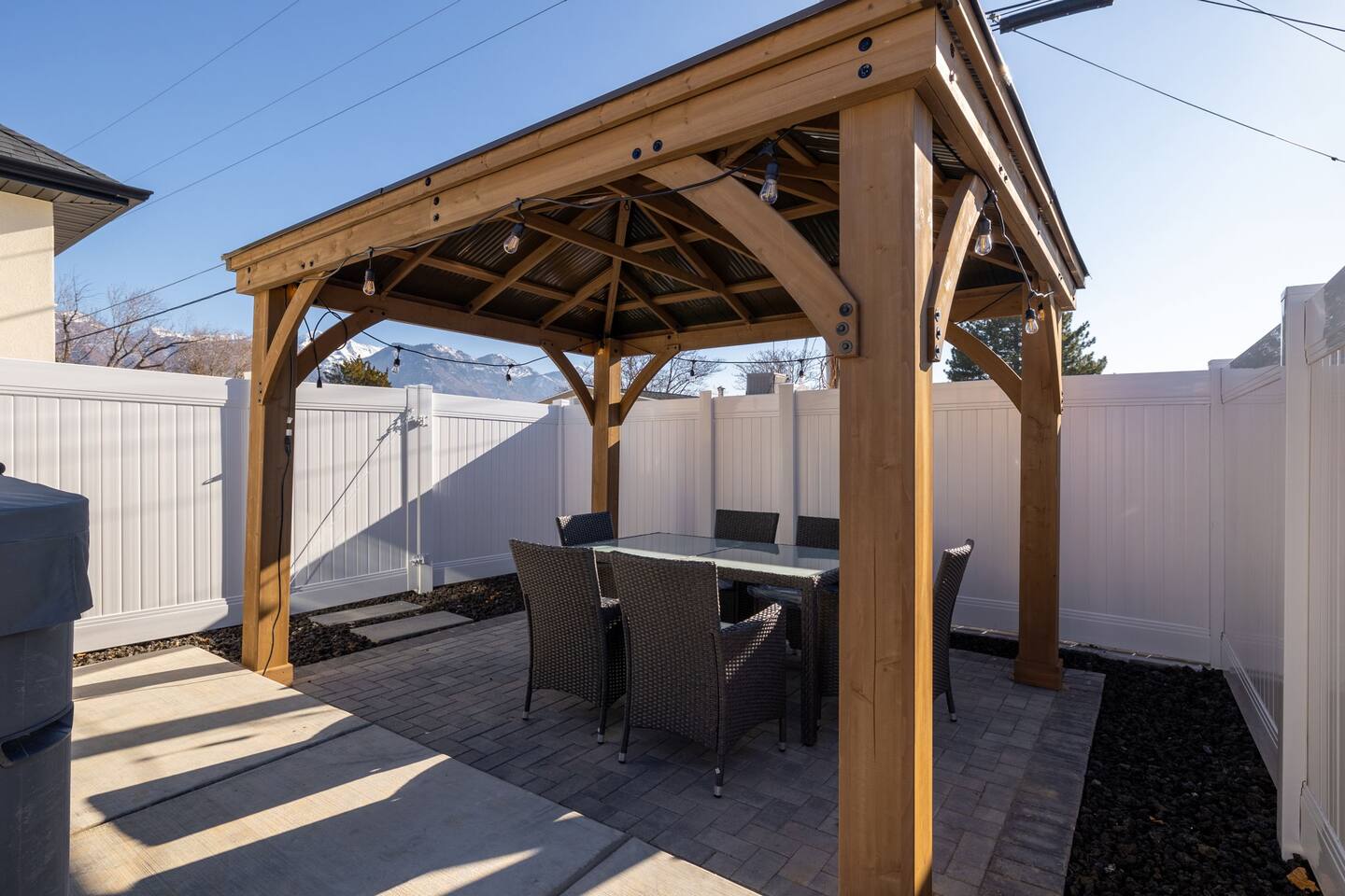Living Area & Kitchen: The kitchen, living room, and dining room are all connected and are the heart of the home for gathering, eating, and creating memories. The kitchen is fully stocked and has an island with seating for 4 people. Towards the back of the home, you will find the dining table that seats 8 and provides access to the backyard. The living space has a 75" TV surrounded by a stylish couch. The kitchen is stocked with all necessary appliances including a waffle maker and coffee maker. You’ll also find sufficient dish ware and utensils for large groups. Exterior: The home has a front and backyard available to guests. Outside the back door there is a small patio area with a gas grill available to guests and a hot tub. There is also an outdoor dining area with a gazebo and putting green. Bedrooms: The master bedroom is located on the ground floor and has a king bed just off from the living space. There is an attached bath with free standing tub and a separate shower. A large walk-in closet provides plenty of space to store your luggage. There are three (3) other bedrooms with one (1) king bed, one (1) queen, and one (1) queen with full trundle. Each bedroom has its own closet. These three bedrooms share a bathroom that is located across the hall. Bathroom(s) & Laundry: On the main level in the master bedroom, there is a large dual sink bathroom with a shower, separate free standing tub, and toilet. There is also a single sink bathroom with shower/tub and toilet. There is a high capacity washer and dryer located on the main level just off the kitchen. Specific Amenities: The guests will have full access to a 2-car enclosed garage equipped with Tesla charger. Wi-Fi Speed: Xfinity -- 701.53 Download See images for test results Distances to these local destinations: - Evermore Park -- 11 minutes - The Homestead Crater and Heber city — 30 minutes - Mount Timpanogos Utah Temple -- 18 minutes - Thanksgiving Point -- 18 minutes - Young Living Essential Oils (Global Headquarters) -- 17 minutes - Utah Valley University -- 6 minutes - Utah Lake State Park - 17 minutes - Brigham Young University -- 8 minutes - Sundance Resort -- 16 minutes - Alta/Snowbird ski resorts — 50 minutes (Note: Distance provided by the most popular navigation website) Note: - Home is a duplex, the owners live in the basement. All entrances are separate.