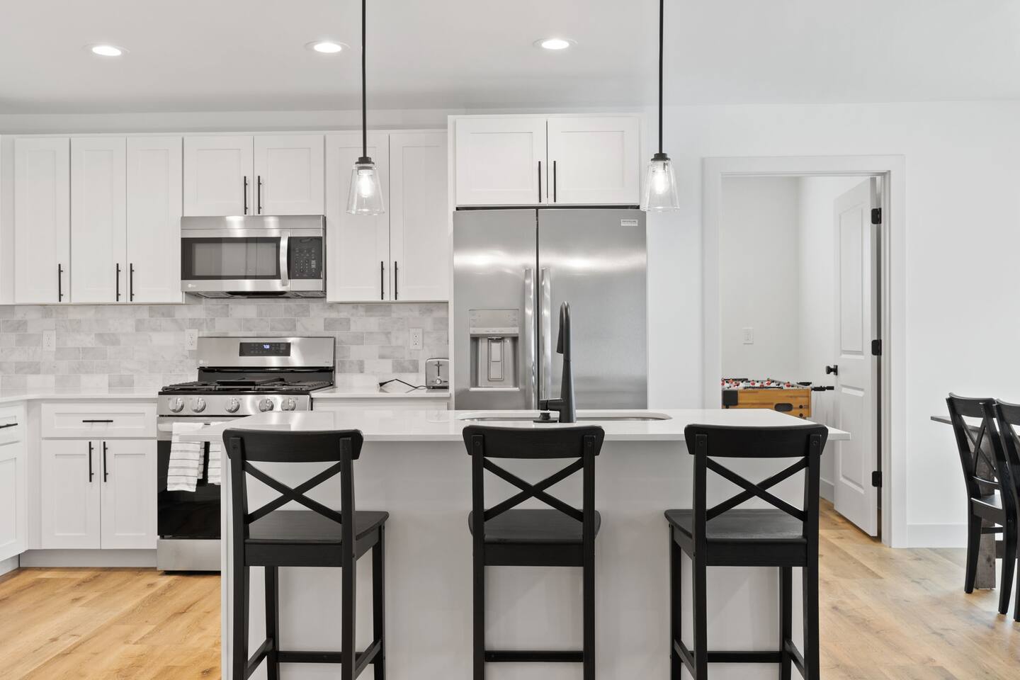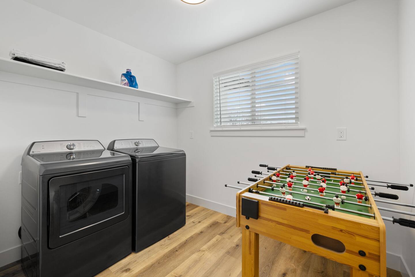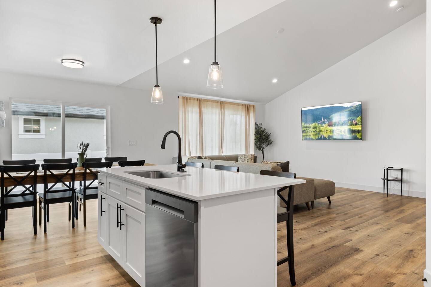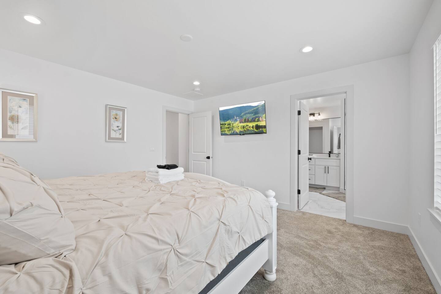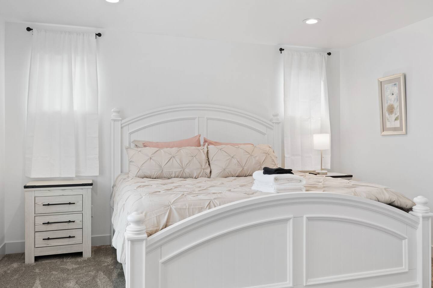 Living Area & Kitchen: The kitchen, living room, and dining room are all connected and are the heart of the home for gathering, eating, and creating memories. The kitchen is fully stocked and has an island with seating for 4 people. Towards the back of the home, you will find the dining table that seats 8 and provides access to the backyard. The living space has a 75" TV surrounded by a stylish couch. The kitchen is stocked with all necessary appliances including a waffle maker and coffee maker. You’ll also find sufficient dish ware and utensils for large groups. Exterior: The home has a front and backyard available to guests. Outside the back door there is a small patio area with a gas grill available to guests and a hot tub. There is also an outdoor dining area with a gazebo and putting green. Bedrooms: The master bedroom is located on the ground floor and has a king bed just off from the living space. There is an attached bath with free standing tub and a separate shower. A large walk-in closet provides plenty of space to store your luggage. There are three (3) other bedrooms with one (1) king bed, one (1) queen, and one (1) queen with full trundle. Each bedroom has its own closet. These three bedrooms share a bathroom that is located across the hall. Bathroom(s) & Laundry: On the main level in the master bedroom, there is a large dual sink bathroom with a shower, separate free standing tub, and toilet. There is also a single sink bathroom with shower/tub and toilet. There is a high capacity washer and dryer located on the main level just off the kitchen. Specific Amenities: The guests will have full access to a 2-car enclosed garage equipped with Tesla charger. Wi-Fi Speed: Xfinity -- 701.53 Download See images for test results Distances to these local destinations: - Evermore Park -- 11 minutes - The Homestead Crater and Heber city — 30 minutes - Mount Timpanogos Utah Temple -- 18 minutes - Thanksgiving Point -- 18 minutes - Young Living Essential Oils (Global Headquarters) -- 17 minutes - Utah Valley University -- 6 minutes - Utah Lake State Park - 17 minutes - Brigham Young University -- 8 minutes - Sundance Resort -- 16 minutes - Alta/Snowbird ski resorts — 50 minutes (Note: Distance provided by the most popular navigation website) Note: - Home is a duplex, the owners live in the basement. All entrances are separate.