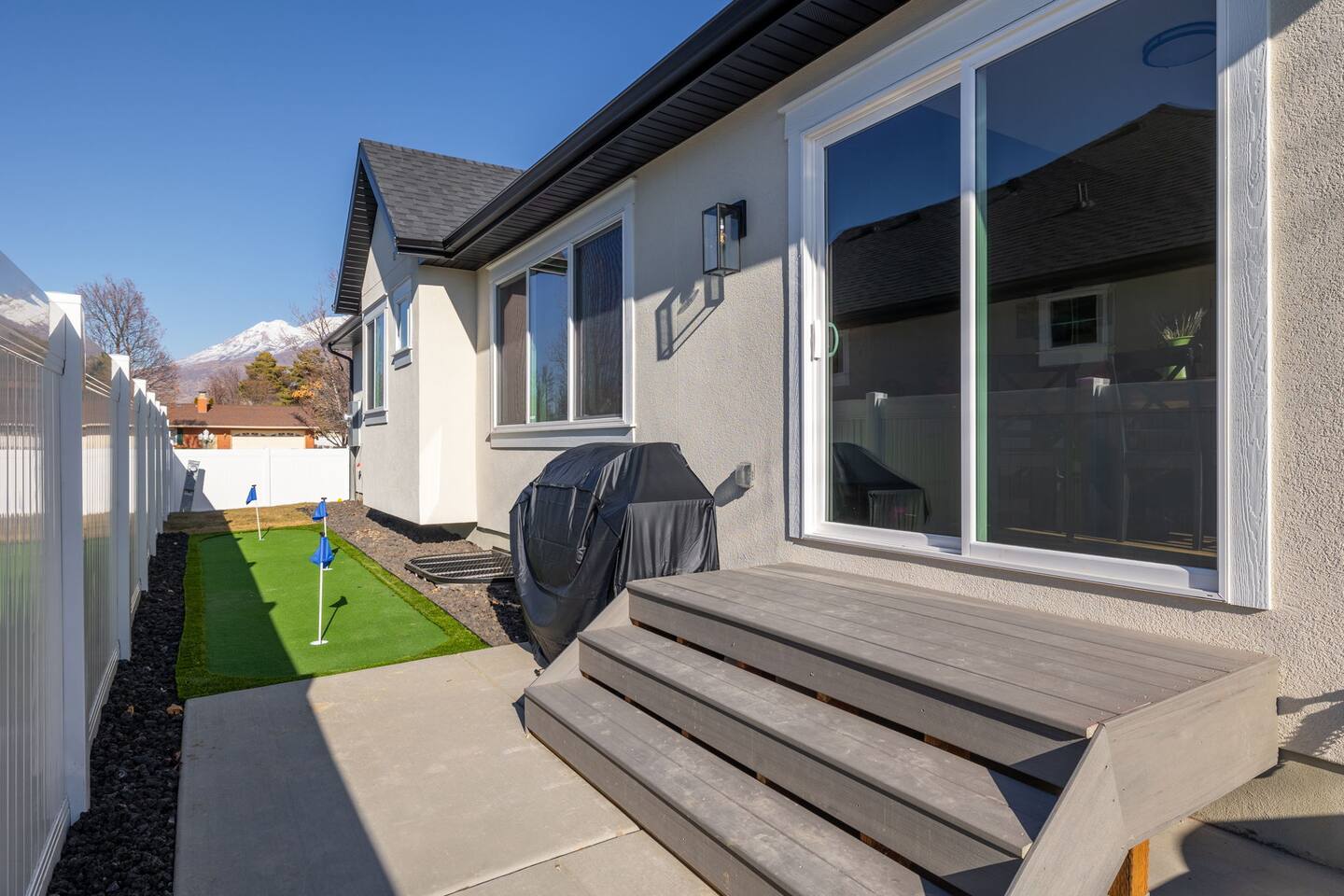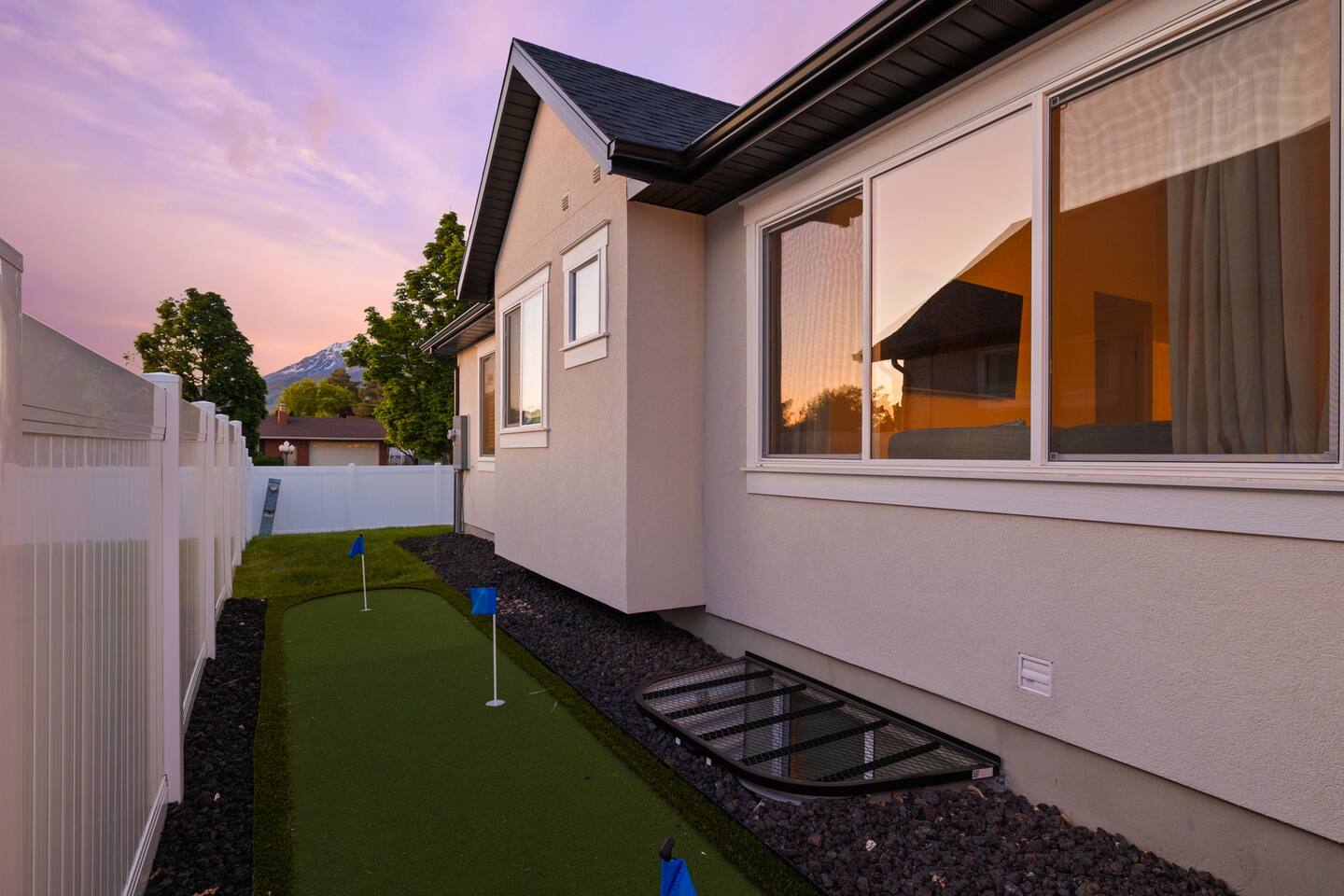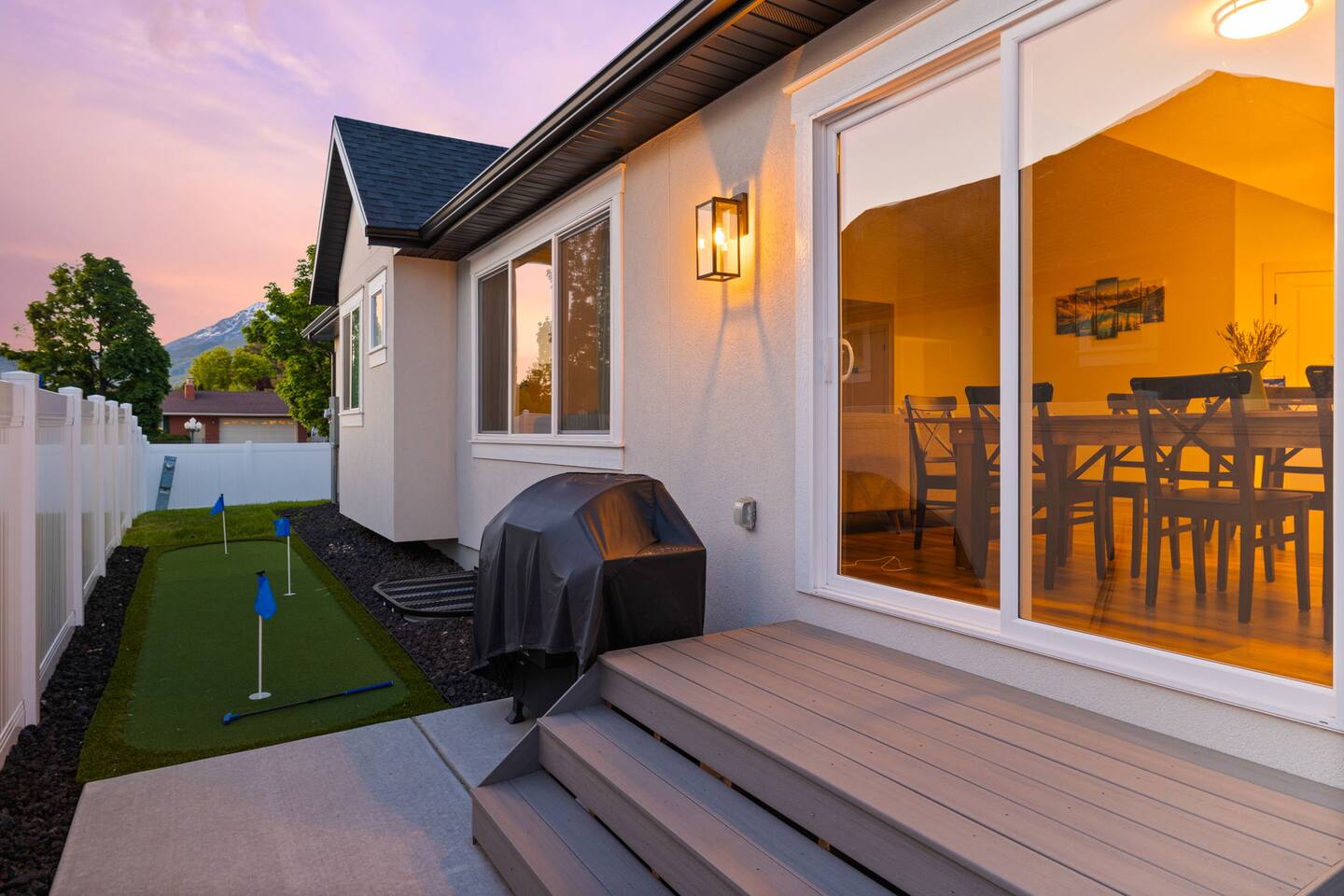 This brand new centrally located home is within walking distance of major shopping centers, dining options, and several parks. At the mouth of Provo canyon, the property has gorgeous views and is within 30 minutes of Sundance and Heber city. Enjoy a fully stocked beautiful kitchen, and an open layout for family gatherings. The outdoor area with a covered patio, putting green, and hot tub is a perfect place to relax. Home is a duplex, the owners live in the basement. All entrances are separate.