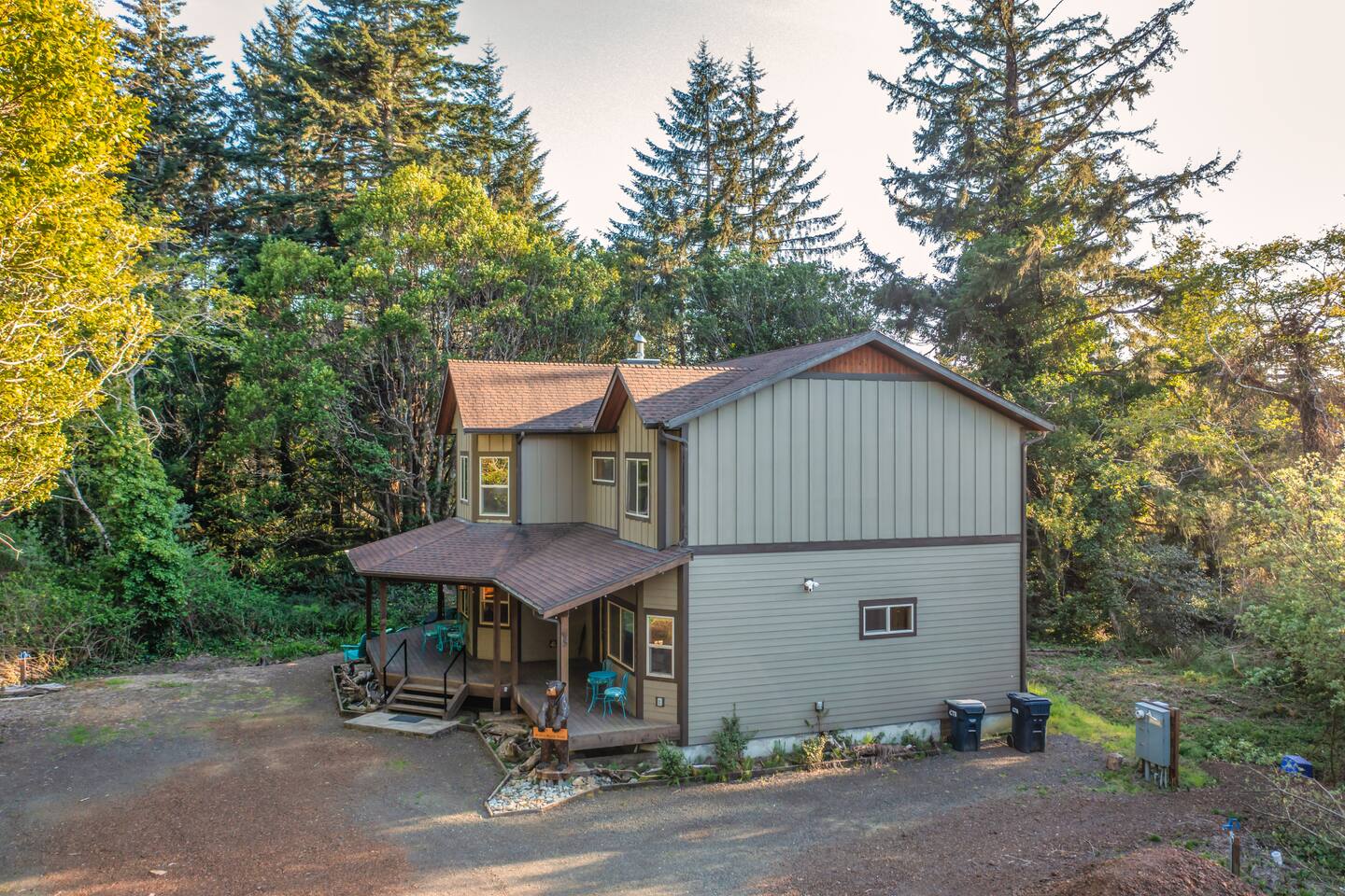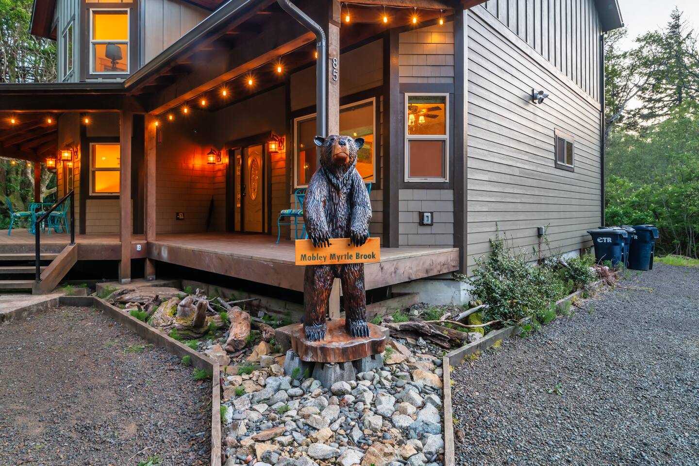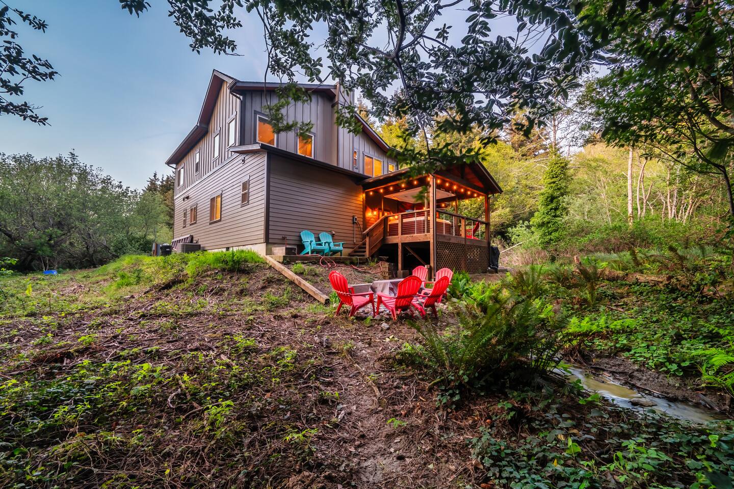 Your immediate surroundings include peaceful woods and a winding creek that comes right by the property. It's a nice place to take your dogs for a walk - they're welcome. To the south lies central Port Orford, with restaurants, art galleries, and a unique dolly port where you can watch the ships travel back and forth. You'll find easy beach access near the Visitor Center in town, as well as at Paradise Point directly to the west. The home even features two RV hook-up pads, so you'll be able to explore the region with ease. A Southern-style wraparound porch takes you to a covered, eight-person hot tub, where you can relax after a long day out. Enjoy heated tile floors back inside as you unwind with free WiFi and the flatscreen TV. You can unwind even more in the game room, or use the kitchen and walk-in pantry to cook up something tasty. The unique triple-bunk room and the upstairs game room with a large TV and a PlayStation 4 are sure to be a hit with youthful travelers. We hope you're as excited for this vacation as we are. Save your dates today! 4 dog(s) are welcome in this home. No other animals are allowed without specific approval. Parking notes: There is free parking for vehicles. Due to local laws or HOA requirements, guests must be at least 21 years of age to book. Guests under 21 must be accompanied by a parent or legal guardian for the duration of the reservation.