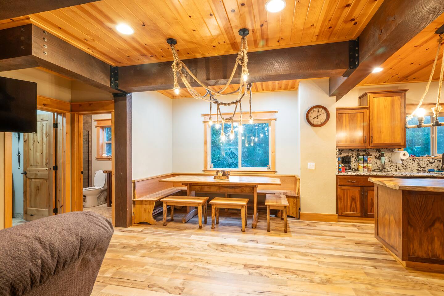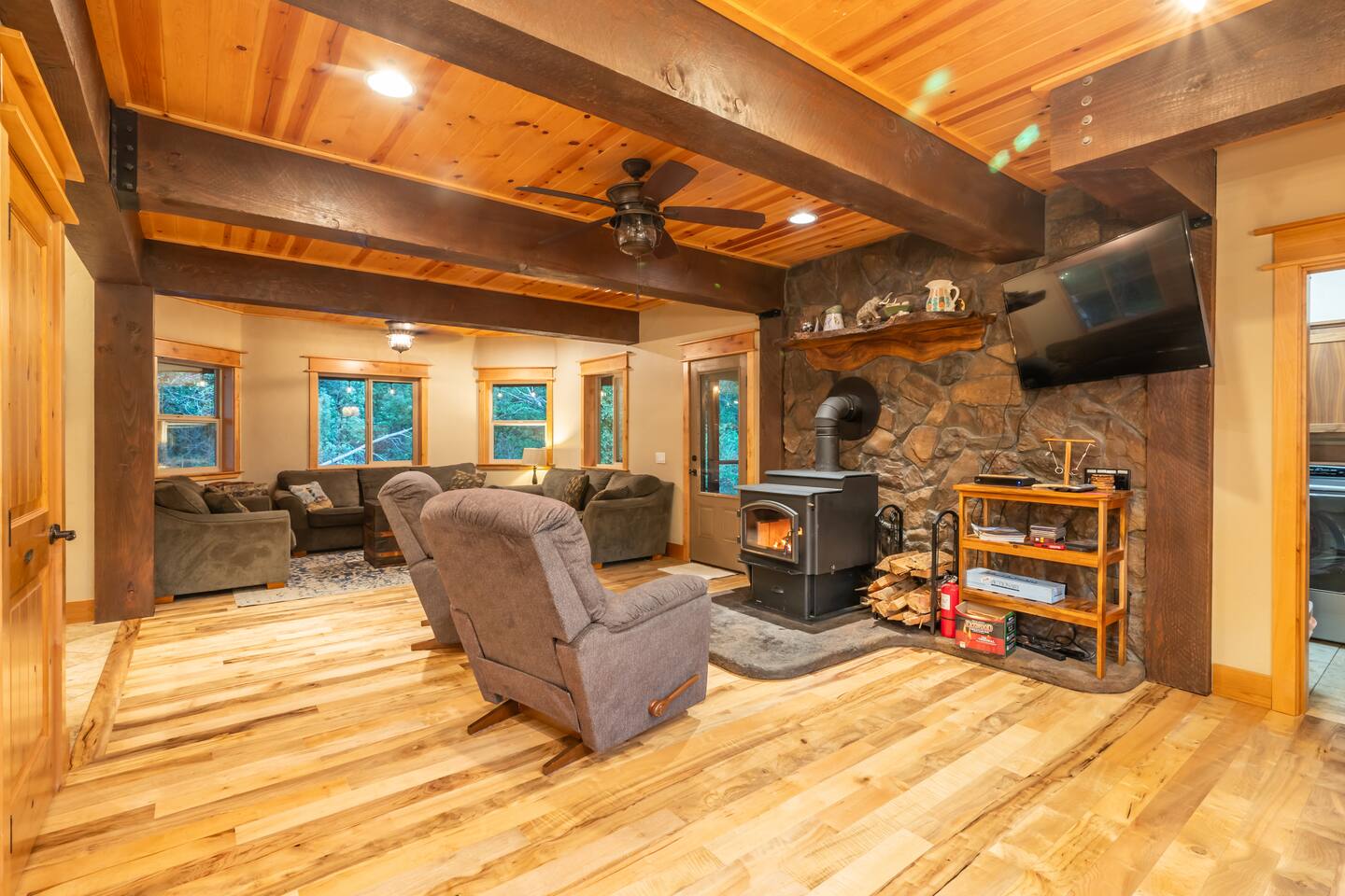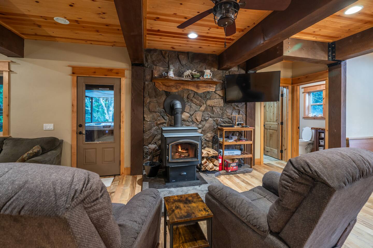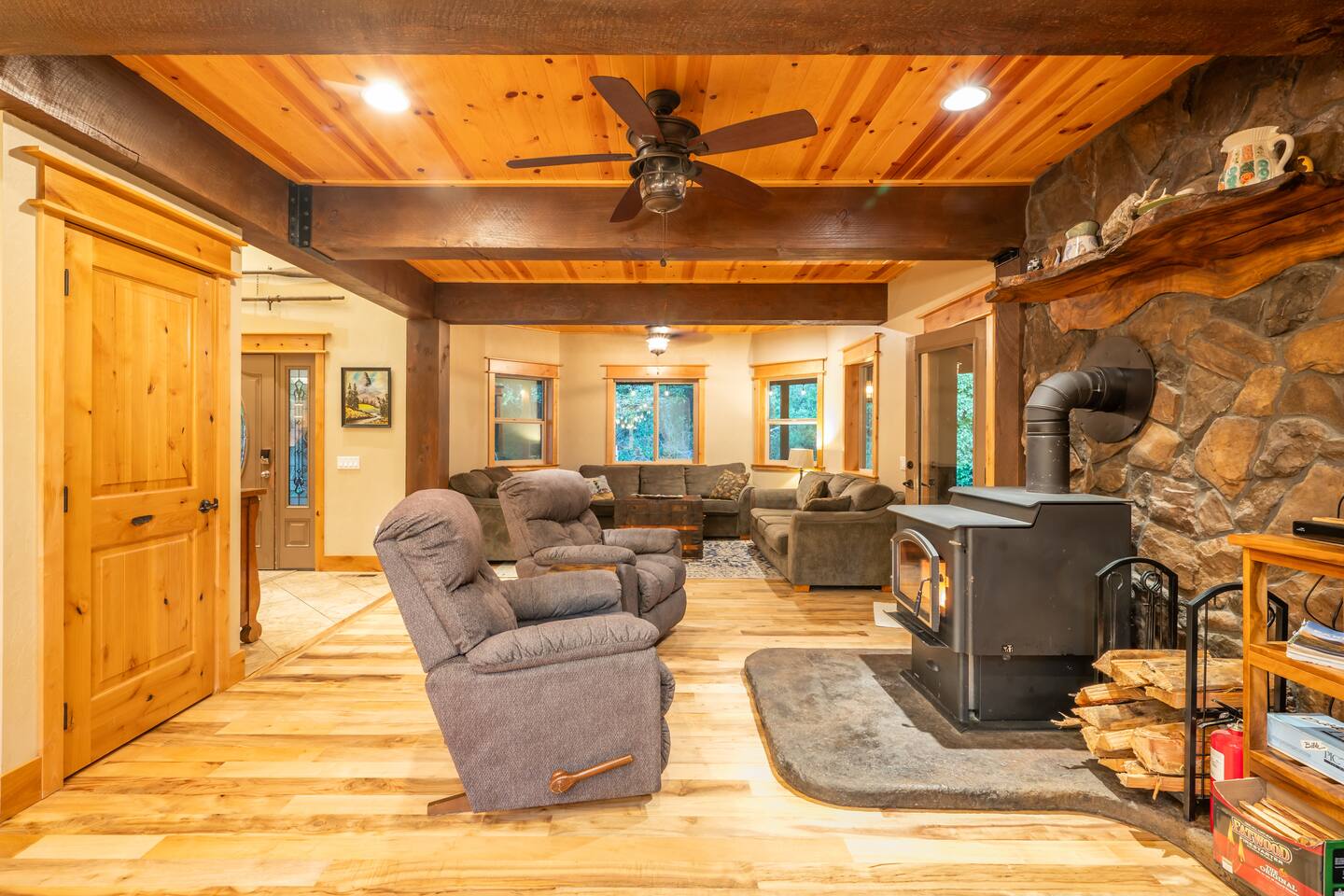 Your immediate surroundings include peaceful woods and a winding creek that comes right by the property. It's a nice place to take your dogs for a walk - they're welcome. To the south lies central Port Orford, with restaurants, art galleries, and a unique dolly port where you can watch the ships travel back and forth. You'll find easy beach access near the Visitor Center in town, as well as at Paradise Point directly to the west. The home even features two RV hook-up pads, so you'll be able to explore the region with ease. A Southern-style wraparound porch takes you to a covered, eight-person hot tub, where you can relax after a long day out. Enjoy heated tile floors back inside as you unwind with free WiFi and the flatscreen TV. You can unwind even more in the game room, or use the kitchen and walk-in pantry to cook up something tasty. The unique triple-bunk room and the upstairs game room with a large TV and a PlayStation 4 are sure to be a hit with youthful travelers. We hope you're as excited for this vacation as we are. Save your dates today! 4 dog(s) are welcome in this home. No other animals are allowed without specific approval. Parking notes: There is free parking for vehicles. Due to local laws or HOA requirements, guests must be at least 21 years of age to book. Guests under 21 must be accompanied by a parent or legal guardian for the duration of the reservation.
