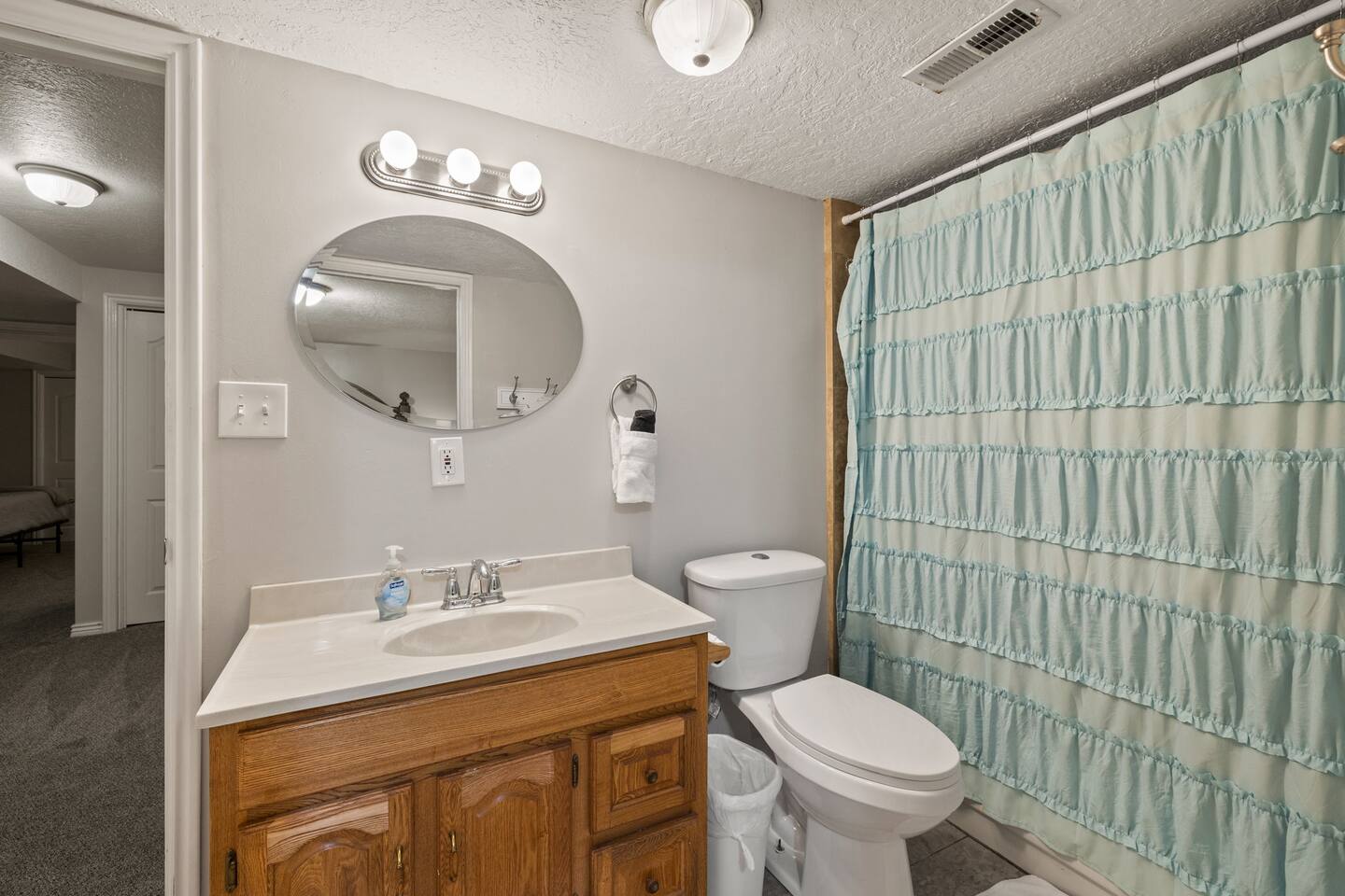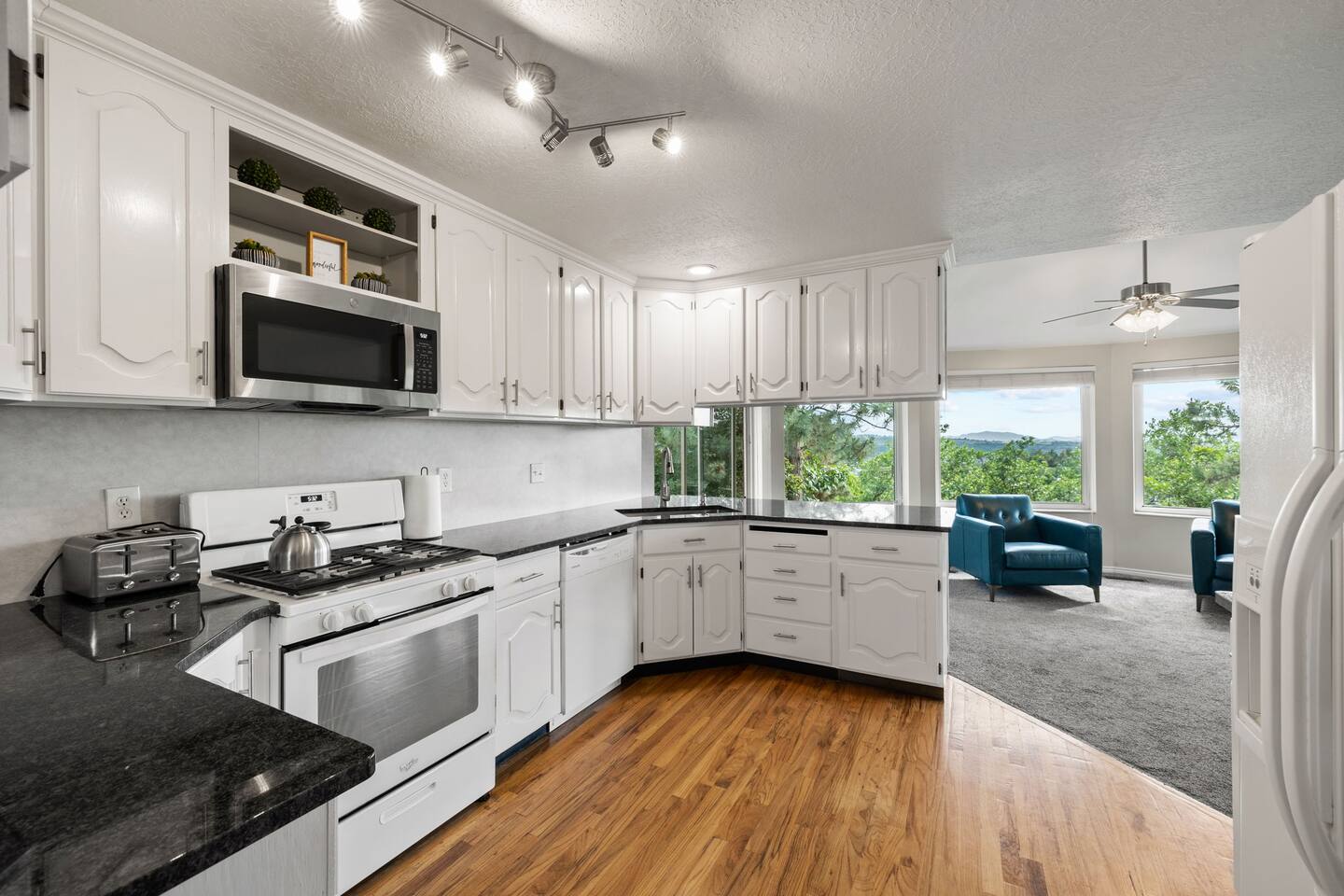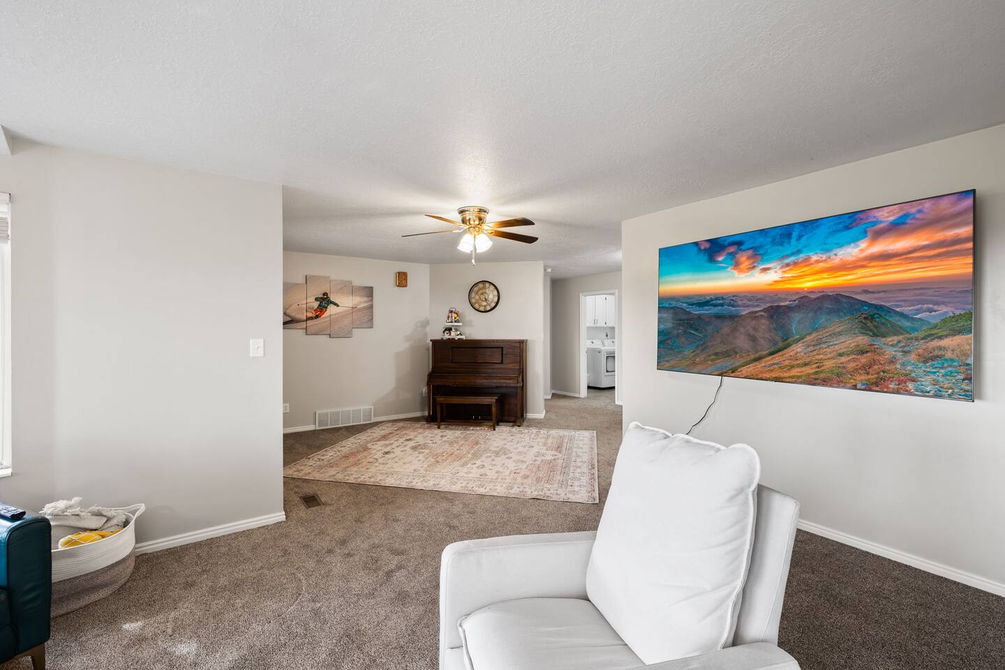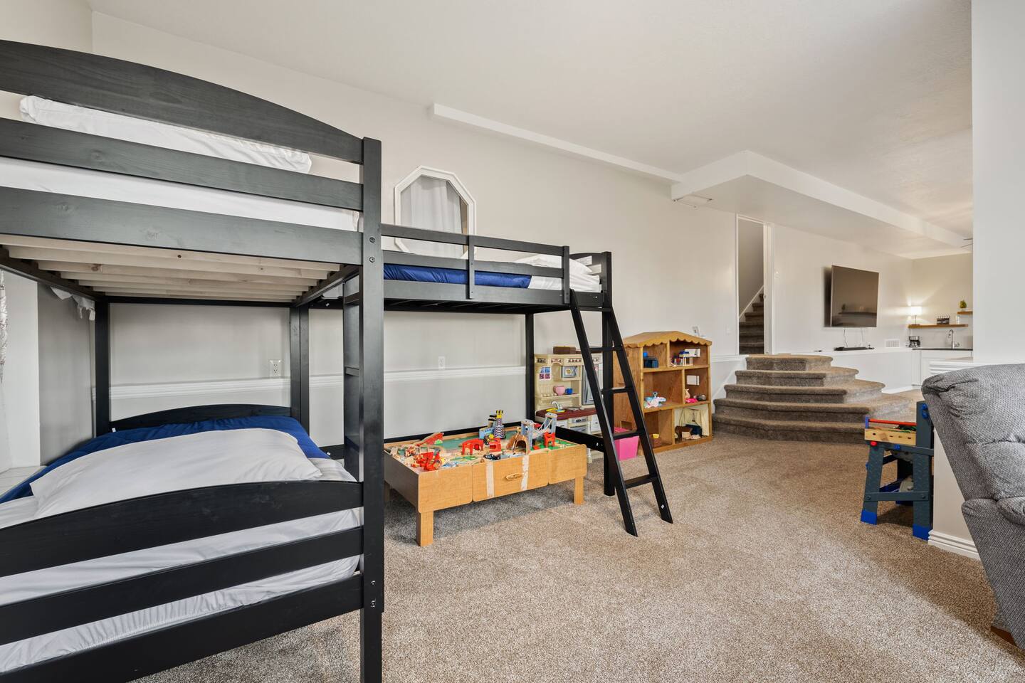 Living Area & Kitchen: The kitchen, living room, and dining room are all connected and are the heart of the home for gathering, eating, and creating memories. The kitchen is fully stocked and has an island with seating for 3 people. In the dining room, you will find the dining table that seats 10 and provides access to the garage. The living space has a 85" TV surrounded by a stylish couch and two (2) armchairs. The kitchen is stocked with all necessary appliances including a waffle maker and hot beverage bar. You’ll also find sufficient dish ware and utensils for large groups. Lower level Theater Room with 8 electric recliners and an 85" TV with sound bar, including a wet bar with a microwave, and fridge. You can also have a Karaoke night with your family, enjoy the retro gaming station or play with your kids in the play area. Exterior: The home is situated on a mountainside with abundant native vegetation. Outside the back door there is a small patio area with a hot tub. Separate deck that has a gas grill. Bedrooms: The master bedroom is located on the main floor and has a king bed just off from the living space. There is an attached bath with jetted tub and a separate shower. There is also a desk and two armchairs. On the main level of the home there is one (1) more bedroom with one (1) queen bed and an adjoining bathroom. In the basement there are two (2) large bedrooms, each with one (1) king sized bed and an additional one (1) twin bed. There is also a play area with a triple twin bunkbed. Each bedroom has its own closet. The two basement bedrooms share a bathroom located in between the two rooms. Bathroom(s) & Laundry: On the main level in the master bedroom, there is a large dual sink bathroom with a shower, separate jetted tub, and toilet. There is an additional bathroom with a single sink on the main level. In the basement, there is a single sink bathroom with shower/tub and toilet. There is a washer and dryer located on the main level that is connected to the mudroom as one enters the home from the side entrance. Specific Amenities: The guests will have full access to a 3-car enclosed garage. Wi-Fi Speed: Distances to these local destinations: - Snowbasin Resort -- 23 minutes - Hill Air force Base -- 20 minutes - Weber River -- 10 minutes - Weber State University -- 9 minutes - Ogden Temple -- 16 minutes - Pineview Reservoir - 28 minutes - Antelope Island -- 43 minutes -Salt Lake Airport -- 32 minutes - Park City — 60 minutes (Note: Distance provided by the most popular navigation website)